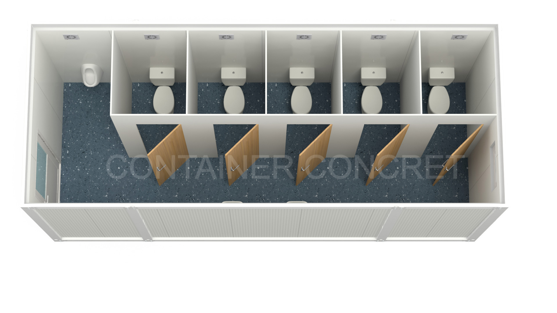 Unitatile oferite de Containero sunt proiectate sa reziste la utilizare intensa si sunt fabricate din materiale care permit o curatare rapida – un aspect esential intr-un mediu unde umiditatea si traficul sunt ridicate. Versatilitatea lor permite o compartimentare personalizata, astfel incat sa incluzi zone de dus, lavoare si zone de vestiar propriu-zis.